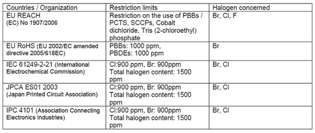 4. Restriction on Halogens Freeinogenic, heterogenic risk in human.